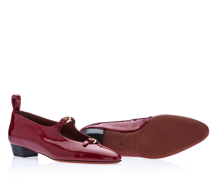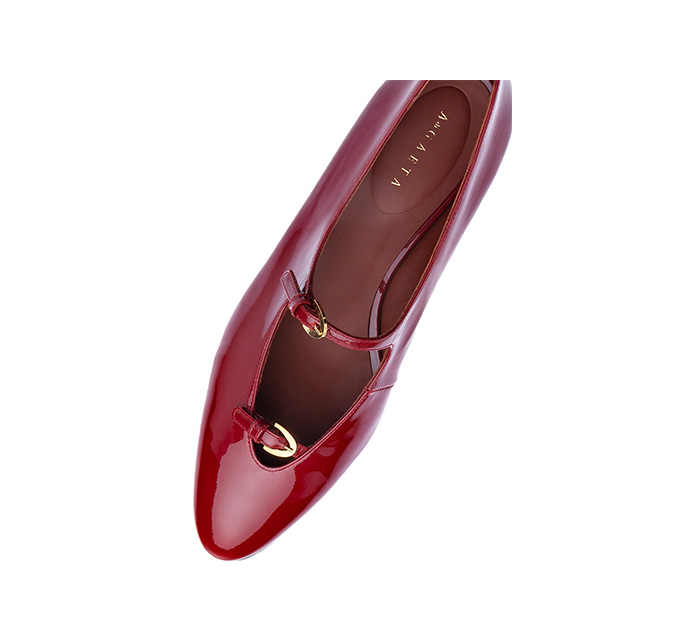 Crafted from Italian patent leather, a high-quality material finished with a blend of acrylic and polyurethane for a durable, long-lasting shine. To maintain its glossy appearance, avoid contact with alcohol or solvents, as these can damage the finish. Dirt can be easily wiped away with a damp cloth. Over time, the glossy finish may naturally soften with wear, but this only enhances the leather’s unique character. To keep your patent leather shoes looking their best, avoid contact with dark or heavily printed materials that could transfer color onto the surface.