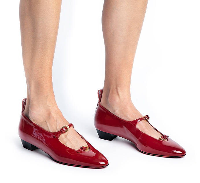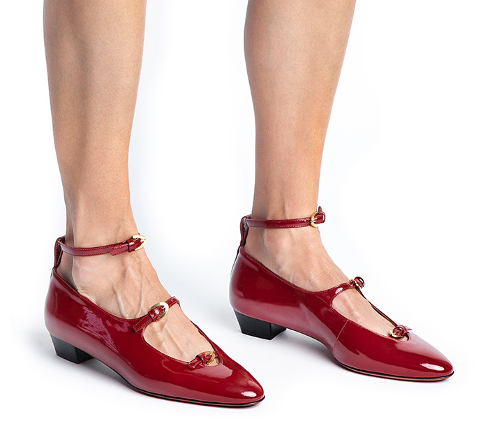 Presenting our stylish twist on the classic Mary-Jane, the Bambola. This chic and versatile design combines playful charm with timeless sophistication, making it perfect for any occasion. With its low-cut almond toe and three adjustable straps across the instep, the Bambola offers the option of wearing with or without its removable ankle strap for added personalization. Unlike our La Timida ballerina, this style includes the ankle strap to give you the flexibility to customize your look. Set on a comfortable 25mm cowboy cuoio heel and finished with custom-made leather-padded insoles, delivering unmatched comfort and style for all-day wear.