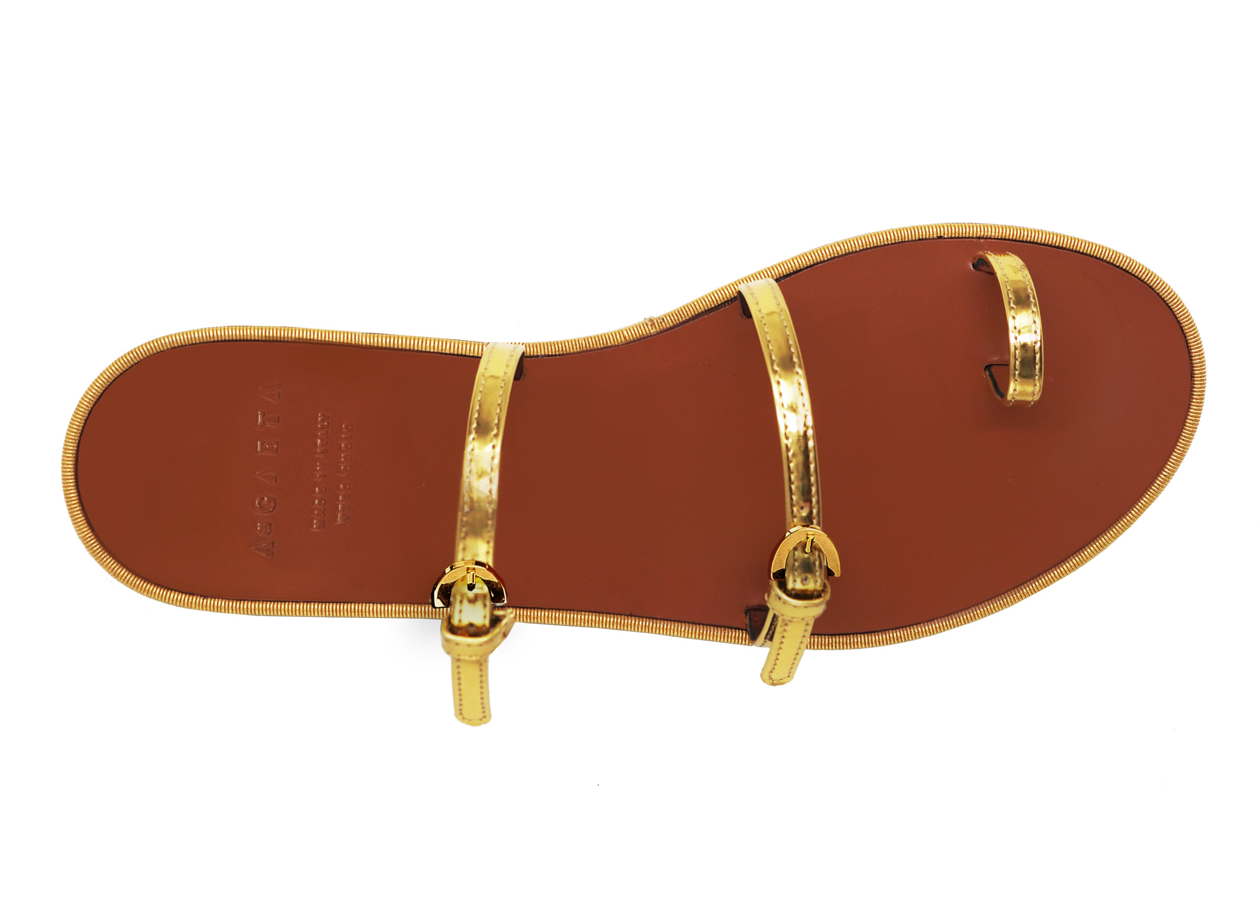 Our flat sandal exudes understated elegance, crafted with a luxurious cuoio sole in our signature A di GAETA Terra hue, beautifully accented by a tone-on-tone grosgrain edge. The minimalist silhouette is elevated by three slender straps, offering versatile styling options: the back strap can be worn across the neck of the foot or around the back of the heel, allowing you to tailor the look to suit your mood and outfit. Delicate buckles and hidden elastic provide an adjustable, secure fit, ensuring both comfort and sophistication with every step.