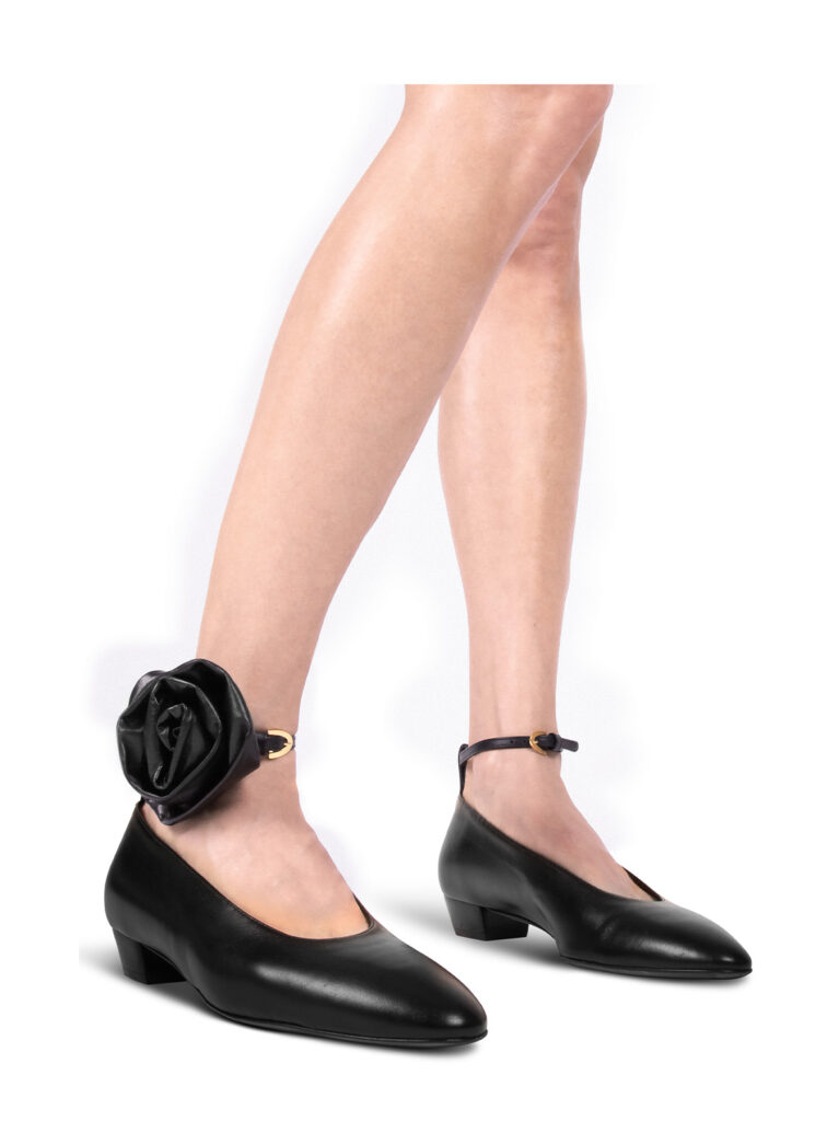 Introducing a beautiful update to our beloved ballerina, La Timida. We’ve enhanced the classic design with a luxurious 3-in-1 feature, transforming these timeless flats into a statement piece. The added leather rose accessory brings a touch of glamour and sophistication, allowing you to personalize your look for a truly unique style. Perfect for clients seeking an elegant option for special occasions or evening events, this special variation maintains the comfort and ease of wear that makes it ideal for all-day, 24-hour use.