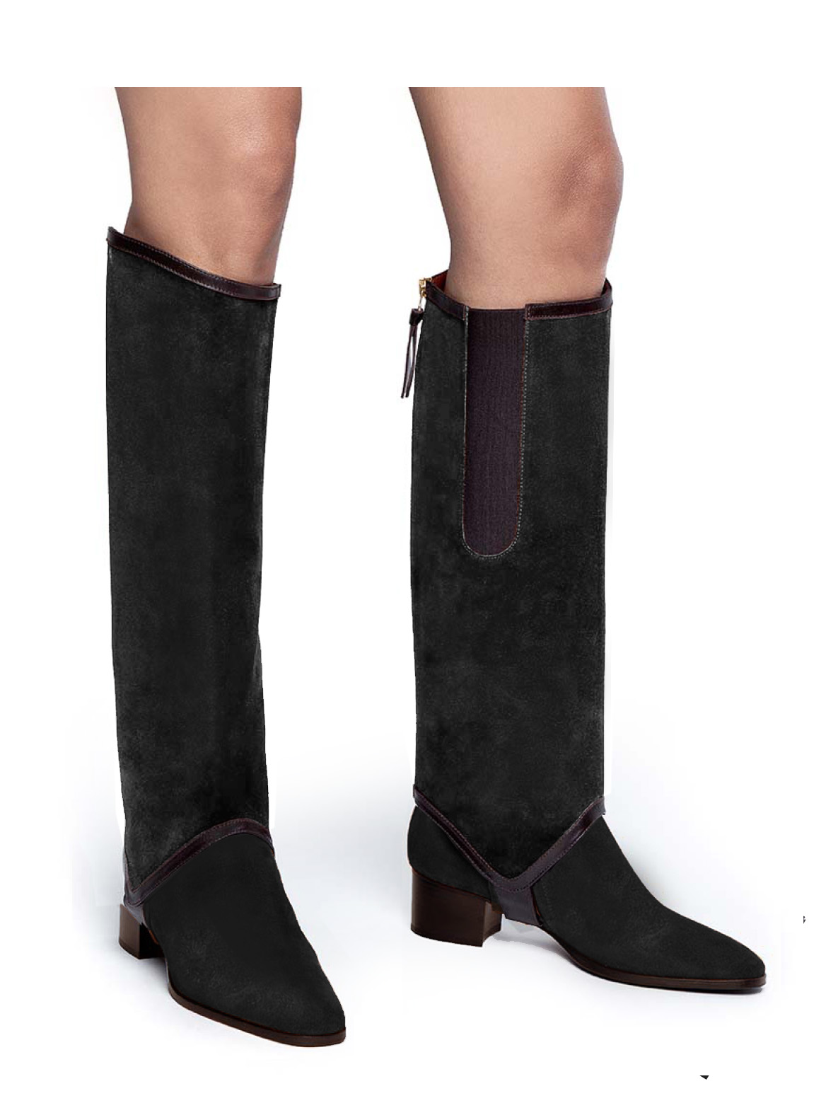 From Ankle Boot to Knee Boot: Our original long gaiter transforms ankle boots into knee-high boots in just a few seconds. The higher, curved edge on the outside elongates the legs, creating a more slender silhouette. With an elastic side panel and a zipper at the back for easy fit, this Add-On Accessory lets you seamlessly switch styles to match your daily needs.