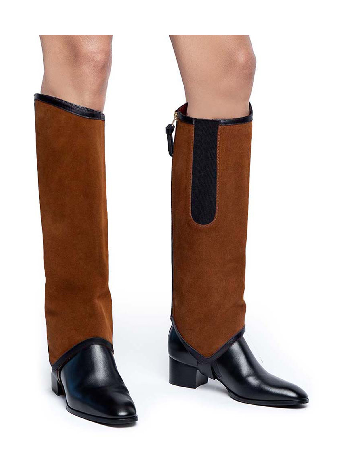 From Ankle Boot to Knee Boot: Our original long gaiter transforms ankle boots into knee-high boots in just a few seconds. The higher, curved edge on the outside elongates the legs, creating a more slender silhouette. With an elastic side panel and a zipper at the back for easy fit, this Add-On Accessory lets you seamlessly switch styles to match your daily needs.