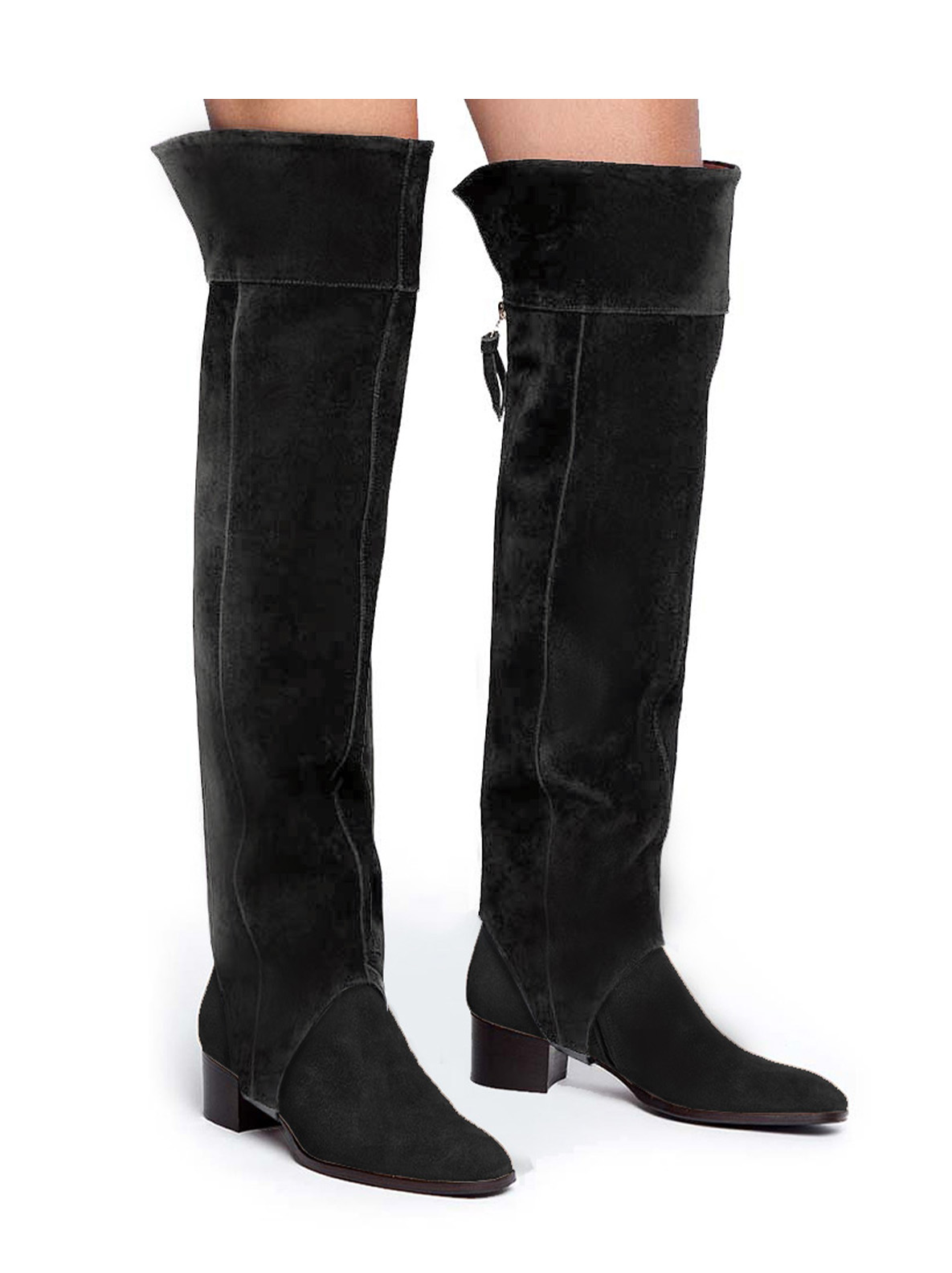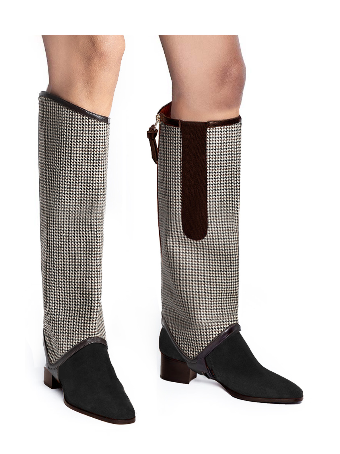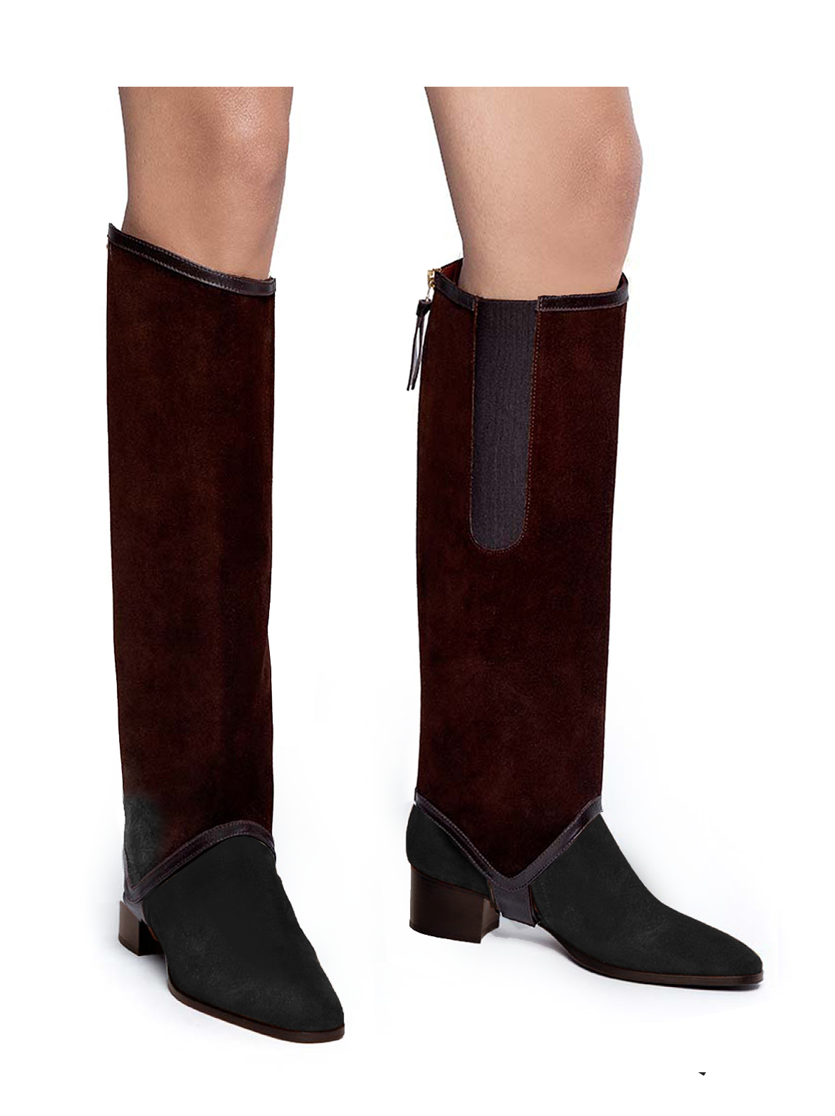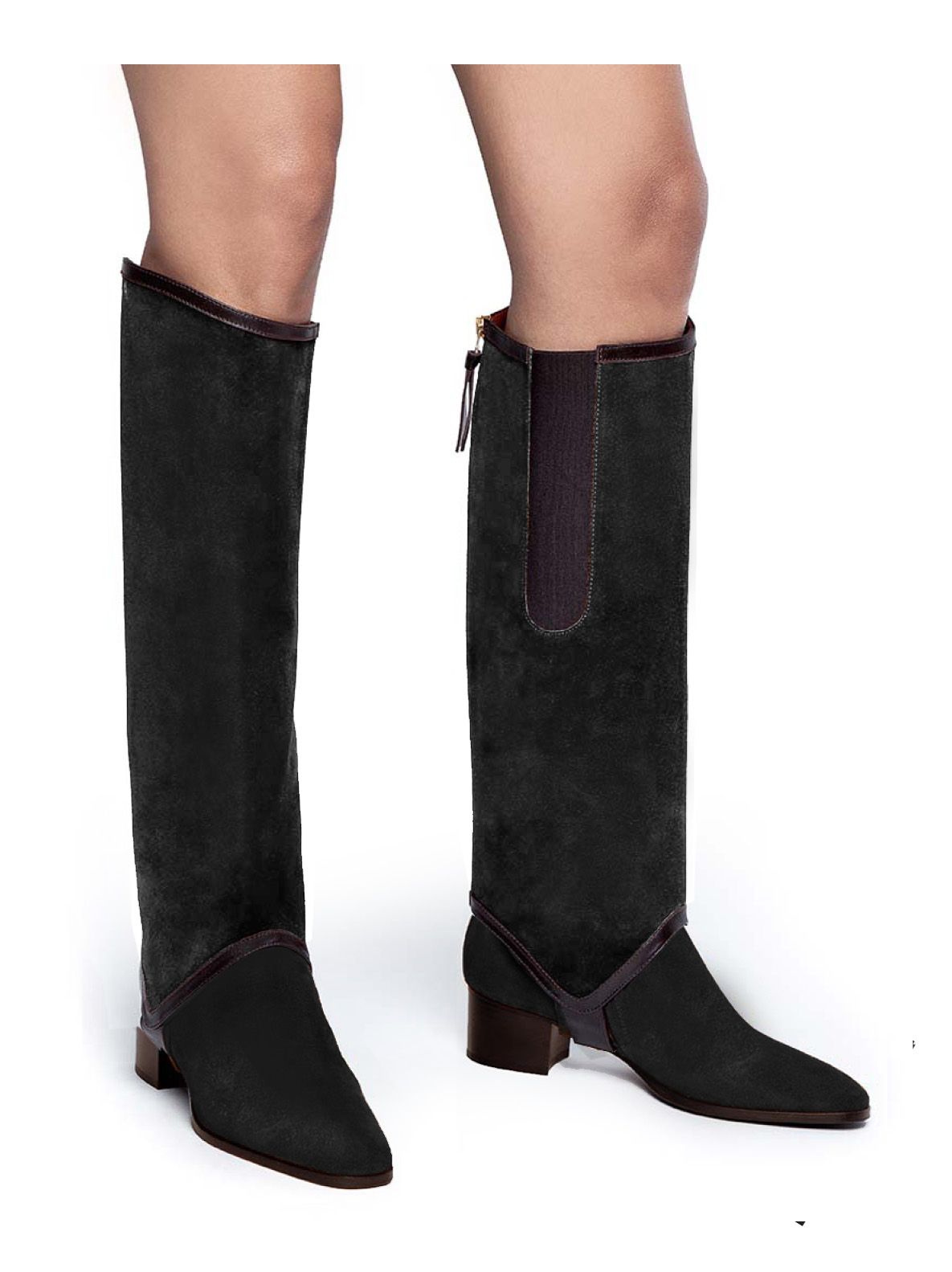 Our original long gaiter transforms ankle boots into knee-high boots in just a few seconds. The higher curved edge on the outside of the gaiter gives your legs a longer, more slender look. The elastic side panel on the inside and the zipper on the back ease the fit, letting you quickly slip this Add-On Accessory on and off, according to your daily needs.
