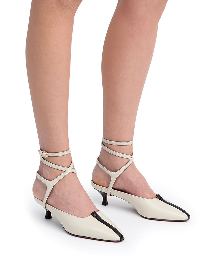 A perfect feminine option – these charming kitten mules add a delicate touch to any outfit, effortlessly elevating your look with a playful yet elegant flair. Versatile kitten-heel mules that can be styled with or without laces, allowing for a personalized look. Designed with a soft-squared toe and accented with a subtle leather strip across the front, they offer a refined yet modern aesthetic. Finished with custom-made leather-padded insoles, these mules provide exceptional comfort for all-day wear.