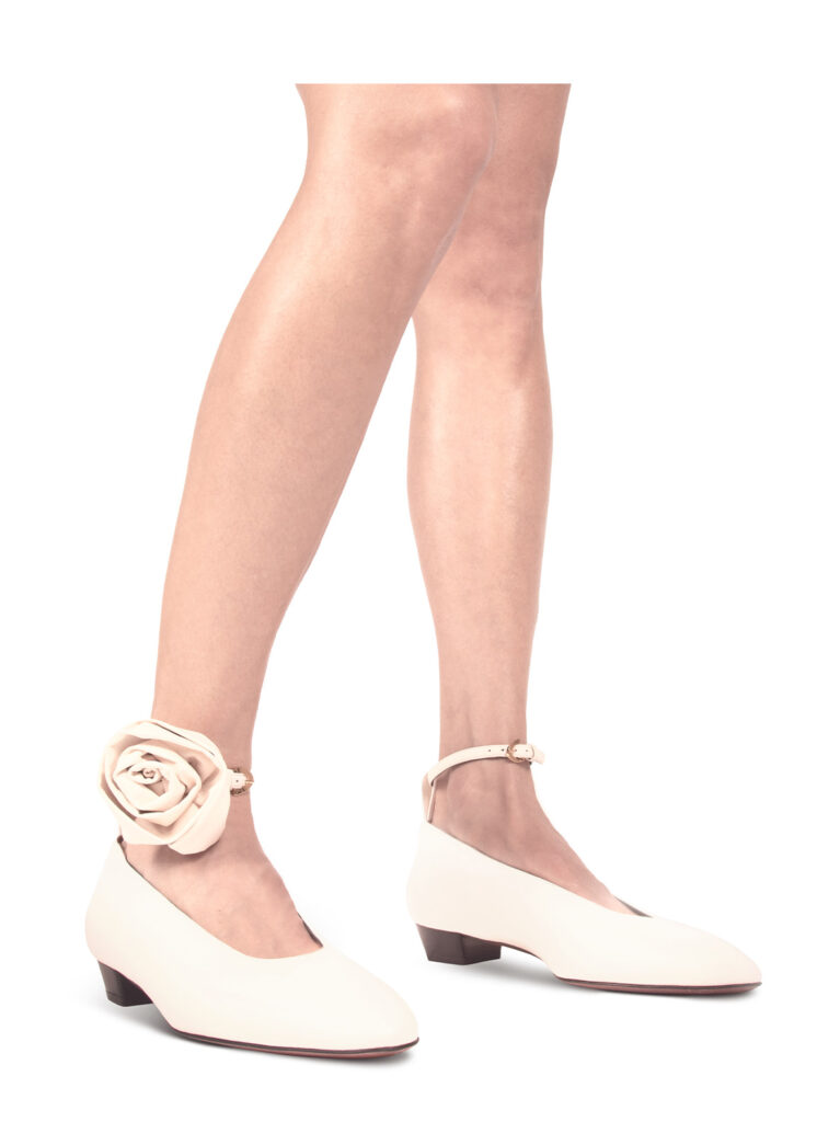 Introducing a beautiful update to our beloved ballerina, La Timida. We’ve enhanced the classic design with a luxurious 3-in-1 feature, transforming these timeless flats into a statement piece. The added leather rose accessory brings a touch of glamour and sophistication, allowing you to personalize your look for a truly unique style. Perfect for clients seeking an elegant option for special occasions or evening events, this special variation maintains the comfort and ease of wear that makes it ideal for all-day, 24-hour use.